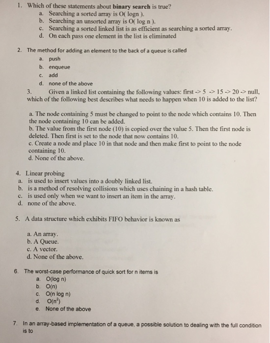 Solved: 1. Which Of These Statements About Binary Search I ...